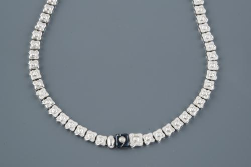 Realizada en oro blanco, formada por eslabones geométricos cuajados de diamantes talla brillante, peso total aproximado: 4.20 ct. ( uno esmaltado ).