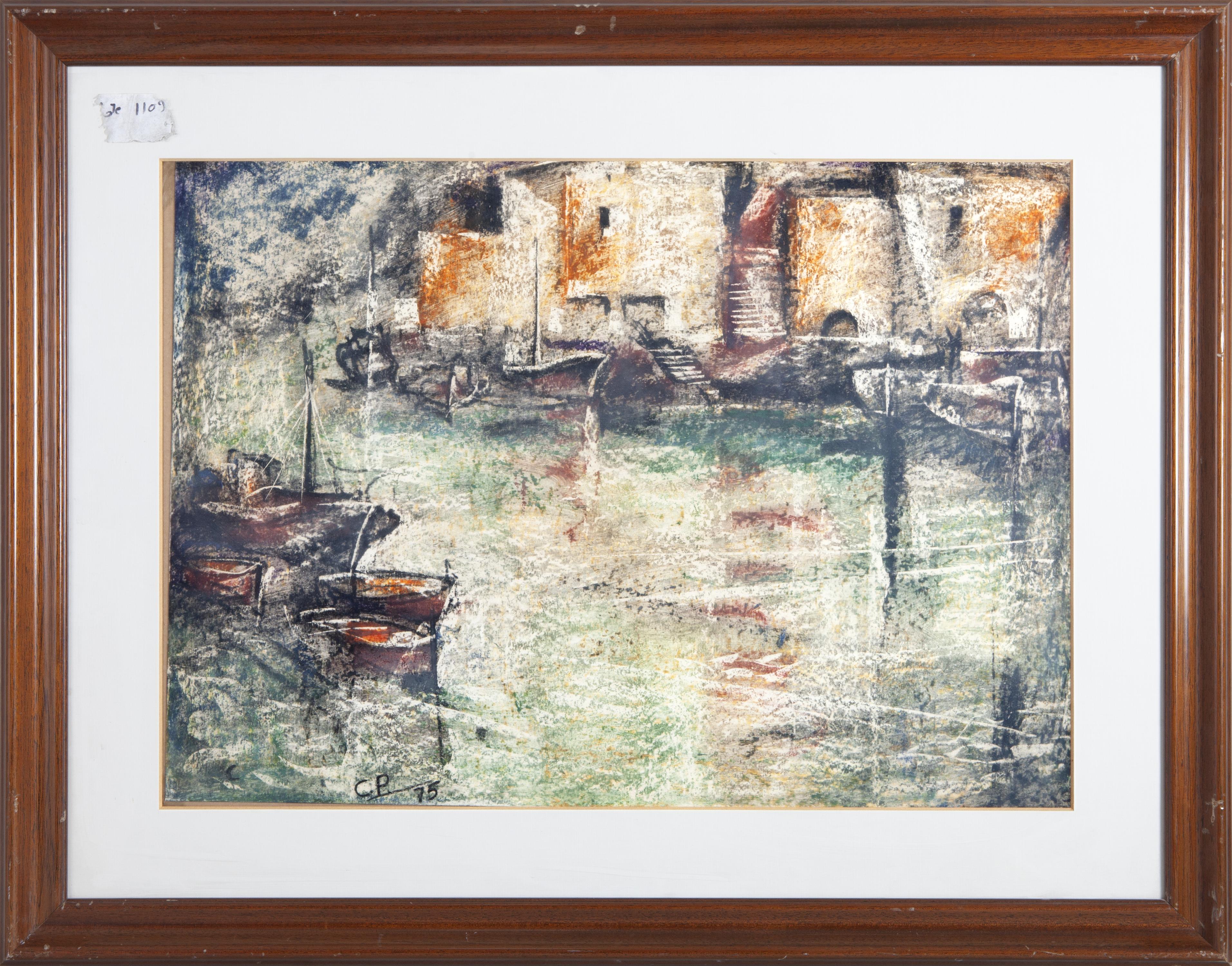 Firmado con iniciales C.P. 75 en ángulo inferior izquierdo.