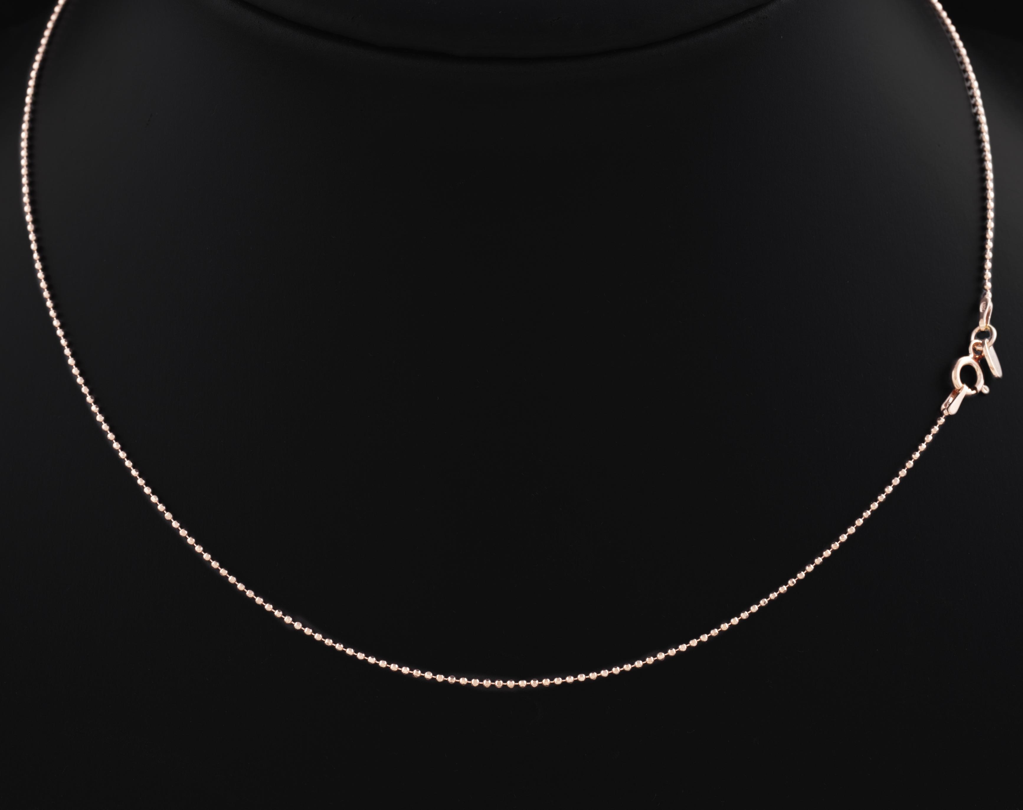 128 - CADENA DE BOLAS EN PLATA BAÑADA EN ORO ROSA, 45 CM