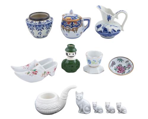 <span class='ref_item'>194 -</span> <span class="object_title">LOTE DE NUEVE PIEZAS DECORATIVAS EN CERÁMICA POLICROMADA</span>   <p><span class="technical_description">Compuesto por:<br/>- Cuatro jarrones pequeños<br/>- Unos zapatos<br/>- Un platito<br/>- Una pipa<br/>- Cinco figuras diferentes.</span><br></p>