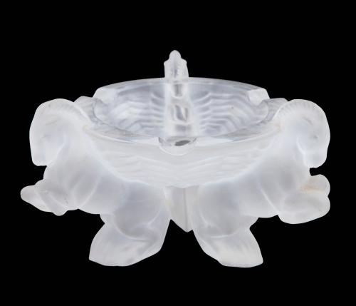 <span class='ref_item'>202 -</span> <span class="object_title">CENICERO DE BOHEMIA EN CRISTAL DE ROCA TALLADO</span>   <p><span class="technical_description">Pieza en forma de cenicero sostenido por tres caballos, realizado en cristal de roca tallado, Bohemia.<br/>Medidas: 7x10cm</span><br></p>