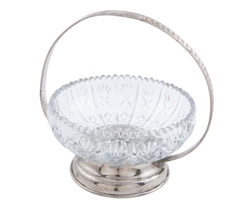 <span class='ref_item'>210 -</span> <span class="object_title">FRUTERO EN VIDRIO TALLADO Y METAL PLATEADO</span>   <p><span class="technical_description">Frutero realizado en vidrio tallado con motivos florales sobre estructura en metal plateado repujado.<br/>Medidas: 25x30cm</span><br></p>