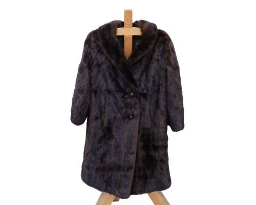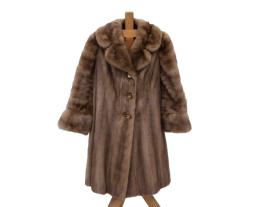 <span class='ref_item'>262 -</span> <span class="object_title">ABRIGO LARGO EN PIEL DE VISÓN REVERSIBLE</span>   <p><span class="technical_description">Mangas rectas con empuñaduras, cuello de solapa grande y cierre por cuatro botones. Falta el botón superior. Bolsillos laterales y forro interior color camel. <br/>Talla aprox. 40</span><br></p>