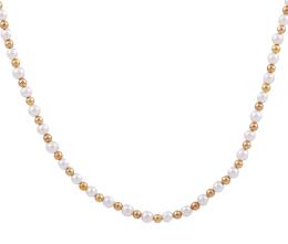 <span class='ref_item'>66 -</span> <span class="object_title">COLLAR-GARGANTILLA DE PERLAS CULTIVADAS Y ORO BAJO</span>  <p><span class="technical_description">Collar gargantilla formado por pequeñas perlas cultivadas en color blanco alternadas con bolitas de oro bajo<br/>Cierre: Reasa en oro bajo<br/>Longitud: 45cm</span><br>Peso: <span class="PESO_HCES1">8,90</span> <span class="PESOUMED_HCES1">gr.</span><br></p>