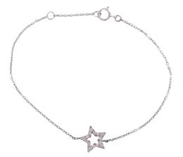 <span class='ref_item'>78 -</span> <span class="object_title">PULSERA EN ORO 18KT Y DIAMANTES</span>  <p><span class="technical_description">Pulsera realizada en oro de 18kt. Formada por una cadena barbada un diseño de estrella central cuajado de diamantes en talla brillante con peso total aprox 0.07ct. <br/>Cierre: Reasa<br/>Longitud: 15cm (+1,5cm de alargador)</span><br>Peso: <span class="PESO_HCES1">1,10</span> <span class="PESOUMED_HCES1">gr.</span><br></p>
