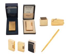 <span class='ref_item'>71 -</span> <span class="object_title">LOTE DE 7 MECHEROS Y UN BOLÍGRAFO CHAPADOS EN ORO</span>  <p><span class="technical_description">Lote formado por 7 mecheros chapados en oro. Dos marca ST Dupont en sus cajas originales con documentación, un Ronson y otras marcas populares: Koel Unicon, Wina, KBL Lido con lacado en negro y Garantie Zunder Nº20, todos de gas salvo uno de gasolina. También un bolígrafo ST Dupont chapado en oro. Señales de uso y necesitan gas</span><br>Peso: <span class="PESO_HCES1">555,90</span> <span class="PESOUMED_HCES1">gr.</span><br></p>