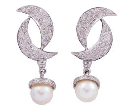 <span class='ref_item'>161 -</span> <span class="object_title">PENDIENTES EN ORO 18KT, PERLAS CULTIVADAS Y DIAMANTES</span>  <p><span class="technical_description">Pendientes con movimiento realizados en oro de 18kt. Parte superior y casquillo cuajadas de diamantes en talla brillante engastados en grano, con un peso total aprox de 1ct. Rematan perlas cultivadas calibradas aprox en 7,5mm<br/>Cierre: Omega<br/>Longitud: 3cm</span><br>Peso: <span class="PESO_HCES1">11,40</span> <span class="PESOUMED_HCES1">gr.</span><br></p>