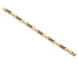 <span class='ref_item'>155 -</span> <span class="object_title">PULSERA EN ORO 18KT, ZAFIROS Y DIAMANTES</span>  <p><span class="technical_description">Pulsera realizada en oro de 18kt. Eslabones con zafiros en talla carré con peso total aprox 2ct, unidos por eslabones adornados por diamantes en talla brillante con peso total aprox 0.25ct. <br/>Cierre: Caja con lengüeta y doble ocho de seguridad<br/>Longitud: 17cm</span><br>Peso: <span class="PESO_HCES1">20,60</span> <span class="PESOUMED_HCES1">gr.</span><br></p>