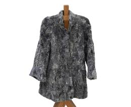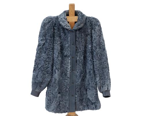 <span class='ref_item'>206 -</span> <span class="object_title">CHAQUETÓN EN PIEL DE ASTRACÁN GRIS</span>   <p><span class="technical_description">Manga recta con cuello corto, bolsillos laterales y cierre de dos enganches. Forro interior negro con bolsillo interior.<br/>Talla 40 aprox.</span><br></p>