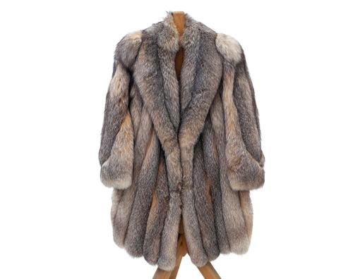 <span class='ref_item'>204 -</span> <span class="object_title">CHAQUETÓN EN PIEL DE ZORRO</span>   <p><span class="technical_description">Mangas rectas, bolsillos laterales y cuello de solapa corto. Cierre de dos enganches. Forro interior marrón brillante. <br/>Talla 40 aprox. </span><br></p>