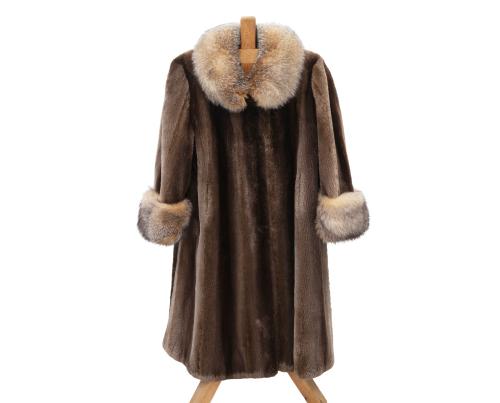 <span class='ref_item'>207 -</span> <span class="object_title">ABRIGO LARGO EN VISÓN RASURADO Y ZORRO</span>   <p><span class="technical_description">Mangas rectas terminadas en piel de zorro con cuello de gran solapa. Bolsillos laterales y cierre de cuatro enganches. Forro interior marrón con bolsillo interior.<br/>Talla 38-40 aprox.</span><br></p>