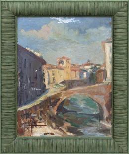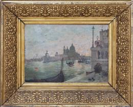 <span class='ref_item'>43 -</span> <span class="object_title">VISTA DEL CANAL DE VENECIA (PPS. S. XX)</span>   <p><span class="author">RAFAEL HIDALGO CAVIEDES (España, 1864-1950)</span> <br><span class="technique_material">Óleo sobre tabla</span><br><span class="technical_description">Representa una vista del famoso canal veneciano con la Basílica de Santa Maria de la Salud de protagonista.<br/>Firmado en el ángulo inferior derecho.<br/>Enmarcado en importante marco de madera tallada y dorada. Con algunas faltas y marcas por el paso del tiempo.<br/>Medidas con marco: 57x46,5cm</span><br></p>