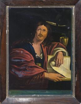 <span class='ref_item'>46 -</span> <span class="object_title">"SAN JUAN EVANGELISTA" SEGÚN DOMENICO ZAMPIERI "IL DOMENICHINO" (Bolonia, 1518-Nápoles, 1641) (S. XX)</span>   <p><span class="technique_material">Grabado sobre vidrio coloreado</span><br><span class="technical_description">Representa la figura de san Juan Evangelista siguiendo los modelos italianos y la iconografía tradicional, apareciendo el águila, el cáliz y el pergamino. Inscripción "St. John" en la zona inferior.<br/>Grabado inspirado en la obra "San Juan Evangelista" del pintor italiano Domenichino, realizada 1625  y ubicada en el Museo Bob Jones University de Greenville.<br/>Enmarcado en madera con cristal. Marco con desperfectos.<br/>Medidas con marco: 40,5x30,5cm</span><br></p>