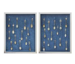 <span class='ref_item'>53 -</span> <span class="object_title">COLECCIÓN DE CUCHARAS DE PROVINCIAS</span>   <p><span class="technique_material">Metal</span><br><span class="technical_description">Conjunto de 27 cucharitas en metal plateado con el escudo de provincias españolas y colocadas sobre terciopelo azul<br/>Enmarcadas en metal con cristal.<br/>Medidas: 47x37cm</span><br></p>
