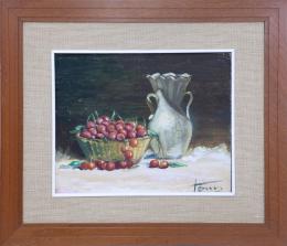 <span class='ref_item'>62 -</span> <span class="object_title">"BODEGÓN CON CEREZAS"</span>   <p><span class="technique_material">Óleo sobre tablex</span><br><span class="technical_description">Muestra un cuenco de cerezas junto a una jarra en porcelana<br/>Firmado Toni en la esquina inferior derecha. <br/>Enmarcado en madera y paspartú.<br/>Medidas: 56 x 64cm con marco</span><br></p>