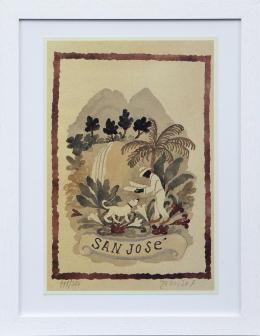 <span class='ref_item'>86 -</span> <span class="object_title">SAN JOSÉ DE COSTA RICA</span>   <p><span class="author">RAMIRO FERNÁNDEZ SAUS (Burgos, 1945)</span> <br><span class="technique_material">Impresión a color</span><br><span class="technical_description">Pertenece a un conjunto de 26 impresiones de la colección Ciudades, publicada por la Concejalía de Cultura del Ayuntamiento de Madrid en 1998 por ser capital iberoamericana de la cultura. Cada una acompañada por un fragmento poético de distintos escritores hispanoamericanos. Firmado y numerado por el autor en ángulo inferior derecho realizado a lápiz. Número de serie 198/200 en el ángulo inferior derecho. <br/>Enmarcado con cristal<br/>Medidas: 44 x 35cm con marco. 33 x 22cm sin marco<br/> </span><br></p>