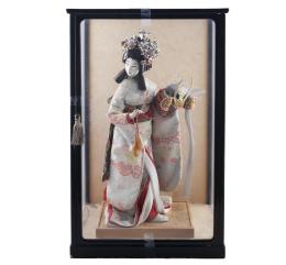 <span class='ref_item'>159 -</span> <span class="object_title">FIGURA DE GEISHA, MARCA KYUGETSU DOLL. JAPÓN, AÑOS 80</span>   <p><span class="technical_description">Muñeca con partes en cerámica y vestida con tejidos y bordados.<br/>Sobre base de madera y vitrina expositiva. Etiqueta de marca en la parte trasera.<br/>Medidas vitrina: 53x32x27cm</span><br></p>
