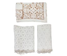 <span class='ref_item'>164 -</span> <span class="object_title">LOTE DE DOS COLCHAS EN CROCHET REALIZADAS A MANO Y UNA EN HILO BLANCO CON VAINICA MARRÓN</span>   <p><span class="technical_description">Dos colchas en crochet para camas individuales realizadas a mano. Motivos de rombos y una de las caras con polka dots en relieve.<br/>Colcha en hilo blanco y marrón anaranjado con motivos florales.</span><br></p>