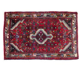 <span class='ref_item'>168 -</span> <span class="object_title">ALFOMBRA PERSA EN LANA DE COLORES</span>   <p><span class="technical_description">Con centro y cenefa con motivos geométricos típicos persas. Uno de los lados cortos, con flecos.<br/>Medidas con flecos: 122x77,5cm</span><br></p>