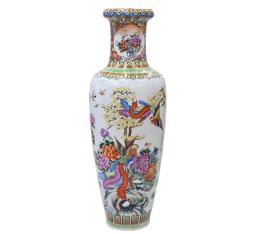 <span class='ref_item'>173 -</span> <span class="object_title">JARRÓN EN PORCELANA POLICROMADA, (S.XX)</span>   <p><span class="technique_material">Porcelana policromada </span><br><span class="technical_description">Con motivos de animales y vegetales. Escena central representando un paisaje con aves. Con detalles en dorados.<br/>Con sello de taller en la base.<br/>Medidas: 145x30x50cm</span><br></p>