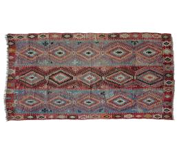 <span class='ref_item'>171 -</span> <span class="description">KILIN TURCO DE DISEÑO GEOMÉTRICO EN COLORES PRIMARIOS </span>  <p><span class="description">Kilin decorado con motivos geométricos en área central y cenefas en colores claros. Con pequeños flecos en lados cortos. Marcas de uso<br>Medidas: 295 x 167,5cm</span></p>
