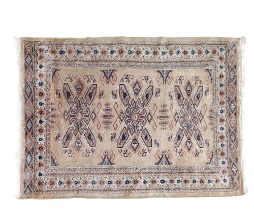 <span class='ref_item'>174 -</span> <span class="object_title">ALFOMBRA PERSA EN LANA DE COLORES CLAROS</span>   <p><span class="technical_description">Centro y cenefa en motivos geométricos realizada en lana de colores pasteles. Con flecos en lados cortos.<br/>Medidas con flecos: 160x107cm</span><br></p>
