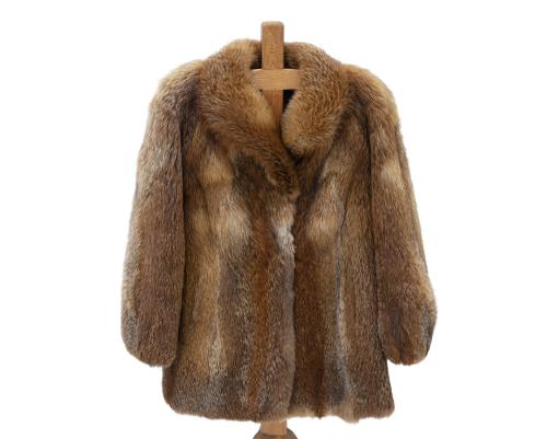 <span class='ref_item'>188 -</span> <span class="object_title">ABRIGO EN PIEL DE ZORRO</span>   <p><span class="technical_description">Cuello de solapa corto, mangas rectas y bolsillos laterales. Cierre de dos enganches. Forro interior marrón con motivos florales. <br/>Talla 42 aprox</span><br></p>