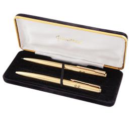 <span class='ref_item'>67 -</span> <span class="object_title">BOLÍGRAFO Y PORTAMINAS PARKER CHAPADOS EN ORO</span>  <p><span class="technical_description">Conjunto de bolígrafo y portaminas Parker en metal chapado en oro. Iniciales G.C. en el cuerpo. <br/>En su estuche.</span><br>Peso: <span class="PESO_HCES1">39,20</span> <span class="PESOUMED_HCES1">gr.</span><br></p>