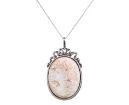 <span class='ref_item'>75 -</span> <span class="object_title">COLGANTE Y CADENA EN PLATA 800m/m CON CAMAFEO</span>  <p><span class="technical_description">Colgante y cadena realizados en plata 800 m/m. El colgante con camafeo en resina representando una efigie de mujer con flores en el pelo. Cadena fina con cierre de reasa<br/>Medidas: 40cm la cadena, 4 x 2,5cm</span><br>Peso: <span class="PESO_HCES1">13,10</span> <span class="PESOUMED_HCES1">gr.</span><br></p>