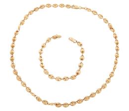 <span class='ref_item'>117 -</span> <span class="object_title">COLLAR Y PULSERA EN ORO 18KT</span>  <p><span class="technical_description">Conjunto formado por un collar y una pulsera realizados en oro de 18kt. Eslabones ovalados intercalados con anillas.<br/>Cierre: Mosquetón<br/>Longitud: 50cm el collar, 20cm la pulsera</span><br>Peso: <span class="PESO_HCES1">29,70</span> <span class="PESOUMED_HCES1">gr.</span><br></p>