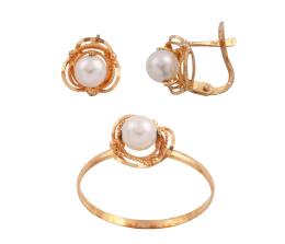 <span class='ref_item'>112 -</span> <span class="object_title">CONJUNTO DE SORTIJA Y PENDIENTES EN ORO 18KT CON PERLAS CULTIVADAS</span>  <p><span class="technical_description">Conjunto formado por una sortija y una pareja de pendientes realizados en oro de 18kt, adornados con perlas cultivadas calibradas aprox en 5mm. Se acompaña de caja<br/>Medida Sortija: 15<br/>Cierre Pendientes: Ballestilla</span><br>Peso: <span class="PESO_HCES1">2,70</span> <span class="PESOUMED_HCES1">gr.</span><br></p>