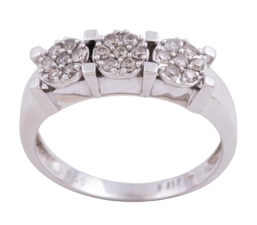 <span class='ref_item'>109 -</span> <span class="object_title">SORTIJA EN ORO 18KT Y DIAMANTES</span>  <p><span class="technical_description">Sortija con diseño tresillo realizada en oro de 18kt. Formada por tres rosetas de diamantes en talla brillante con peso total aprox 0.40ct<br/>Medida Sortija: 15</span><br>Peso: <span class="PESO_HCES1">4,40</span> <span class="PESOUMED_HCES1">gr.</span><br></p>