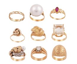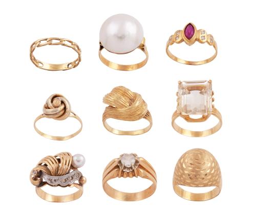 <span class='ref_item'>180 -</span> <span class="object_title">LOTE 9 SORTIJAS EN ORO 16KT</span>  <p><span class="technical_description">Lote de 9 sortijas realizada en oro de 16kt. Adornadas con diferentes piedras y perlas. Con diferentes tallas</span><br>Peso: <span class="PESO_HCES1">40,70</span> <span class="PESOUMED_HCES1">gr.</span><br></p>