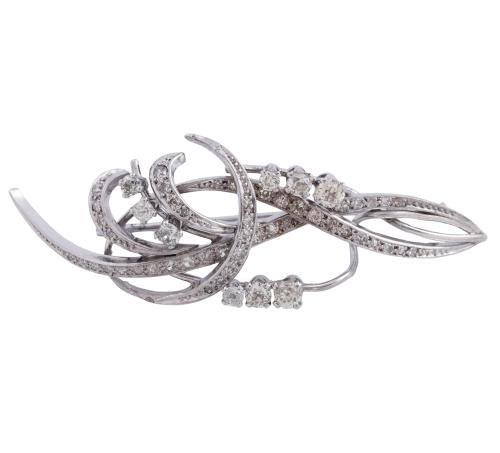 <span class='ref_item'>173 -</span> <span class="object_title">BROCHE EN ORO 14KT Y DIAMANTES</span>  <p><span class="technical_description">Broche realizado en oro de 14kt. Diseño vegetal de bandas cruzadas adornadas por diamantes en talla brillante con peso total aprox 1.50ct<br/>Cierre: Aguja con canutillo de seguridad<br/>Medidas: 6,5x 2,5cm</span><br>Peso: <span class="PESO_HCES1">11,40</span> <span class="PESOUMED_HCES1">gr.</span><br></p>