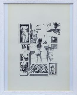 <span class='ref_item'>21 -</span> <span class="object_title">LA ESCULTORA. HOMENAJE A ÁNGELA, 2006</span>   <p><span class="author">CELEDONIO PERELLÓN CARDONA (Madrid, 1926-2015) </span> <br><span class="technique_material">Litografía</span><br><span class="technical_description">Pertenecientes a la serie "CARNE, DEMONIO Y EL MUNDO" realizada en 2006. Muestra la labor de la escultora Ángela, quien coloca en distintas partes de la composición elementos escultóricos clásicos.<br/>Firmado en plancha por el autor en la esquina inferior izquierda. Sello en seco en esquina inferior derecha. Editada por la Galería Saint Michel. número de edición 125 de 266 total.<br/>Enmarcado en madera blanca con cristal.<br/>Medidas: 54 x 44 cm marco incluido.</span><br></p>
