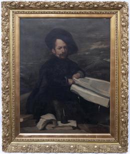 <span class='ref_item'>1 -</span> <span class="object_title">BUFÓN CON LIBROS, COPIA DE ORIGINAL DE DIEGO DE VELÁZQUEZ</span>   <p><span class="technique_material">Óleo sobre lienzo</span><br><span class="technical_description">Copia realizada aproximadamente a finales del s.XIX de la obra original de Diego Velázquez "Bufón con libros". Realizada hacia el 1640, se encuentra actualmente en el Museo nacional del Prado.<br/>En marco de madera tallada y trabajada en dorada. Pequeña falta de pigmento en parte superior. El lienzo presenta salpicaduras.<br/>Medidas del lienzo: 104 x 80 cm</span><br></p>