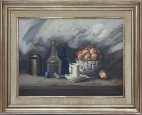 <span class='ref_item'>23 -</span> <span class="object_title">BODEGÓN CON FRUTAS</span>   <p><span class="author">DANIEL MERINO (Madrid, 1941 - 2011)  </span> <br><span class="technique_material">Óleo sobre tabla</span><br><span class="technical_description">Muestra un bodegón formado por diversas frutas acompañadas de recipientes de distinto tamaño y material.<br/>Firmado por el autor en la esquina inferior izquierda. Enmarcado en madera parcialmente dorada, con paspartú.<br/>Medidas marco: 88x109cm</span><br></p>