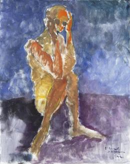 <span class='ref_item'>99 -</span> <span class="object_title">EL TORMENTO</span>   <p><span class="author">ISIDORO LAZARO FERRE (1949) </span> <br><span class="technique_material">Óleo sobre lienzo</span><br><span class="technical_description">Figura sedente con las manos en la cabeza en actitud afligida<br/>Titulado y firmado en el ángulo inferior derecho<br/>Sin marco</span><br><span class="ALTO_HCES1">92 </span><span class="ALTOUMED_HCES1">cm.</span>x<span class="ANCHO_HCES1">73 </span><span class="ANCHOUMED_HCES1">cm.</span></p>
