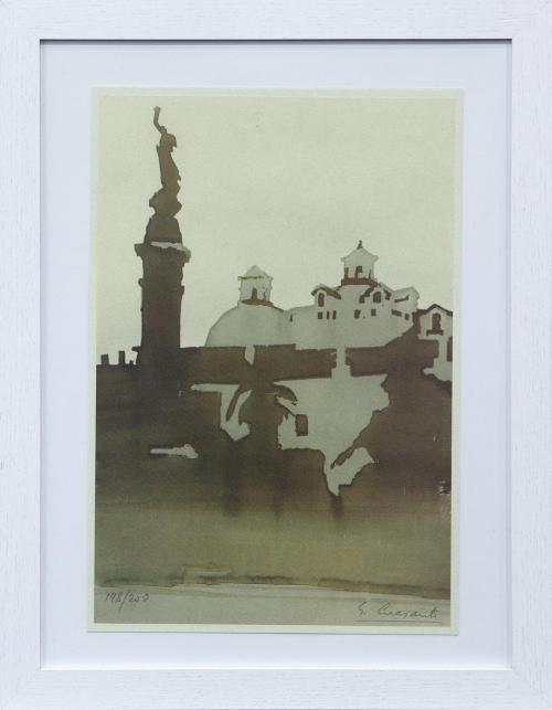 <span class='ref_item'>98 -</span> <span class="object_title">QUITO</span>   <p><span class="author">JOSÉ MARÍA CUASANTE (Burgos, 1945)</span> <br><span class="technique_material">Impresión a color</span><br><span class="technical_description">En escena la plaza de la independencia de Quito, con monumento a los Héroes del 10 de agosto de 1809.<br/>Pertenece a un conjunto de 26 impresiones de la colección Ciudades, publicada por la Concejalía de Cultura de Madrid en 1998 con motivo de su nombramiento como capital iberoamericana de la cultura. Cada una con un fragmento poético de distintos escritores hispanoamericanos. <br/>Firmado y numerado por el autor en ángulo izquierdo realizado a lápiz. Número de serie 198/200 en el ángulo inferior derecho. Enmarcado con cristal<br/>Medidas: 44 x 35cm con marco. 33 x 22cm sin marco</span><br></p>