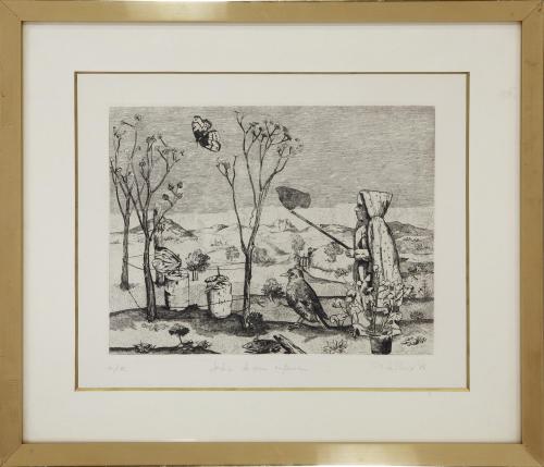 <span class='ref_item'>81 -</span> <span class="object_title">"CAZA DE LA MARIPOSA"</span>   <p><span class="author">ESCUELA FRANCESA CONTEMPORÁNEA  </span> <br><span class="technique_material">Litografía</span><br><span class="technical_description">Firmado a lápiz Anderoux. Numerado a lápiz e/A<br/>Fechado, 78<br/>Enmarcado en cristal.<br/>Medidas marco: 52cm x 45cm<br/> </span><br></p>