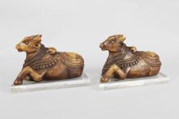 <span class='ref_item'>115 -</span> <span class="object_title">PAREJA DE BUEYES EN RESINA SOBRE PEANA DE METACRILATO</span>   <p><span class="technical_description">Pareja de bueyes sentados decorativos o como soporte para libros. Decorados con monturas y collares en cuello y parte trasera. Muestran una flor en la frente y una diadema. Realizados en resina y colocados sobre una peana rectangular de metacrilato.<br/>Medidas con peana: </span><br><span class="ALTO_HCES1">21,50</span>x<span class="ANCHO_HCES1">33</span>x<span class="GRUESO_HCES1">18 </span><span class="GRUESOUMED_HCES1">cm.</span></p>