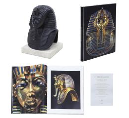 <span class='ref_item'>133 -</span> <span class="object_title">ESCULTURA BUSTO DE TUTANKHAMON EDICIÓN SKEL Y LIBRO</span>   <p><span class="technical_description">Escultura en bronce a la cera perdida del busto de Tutankhamón sobre base de piedra, copia del original del Museo de El Cairo. Acompañado por el libro "El faraón, su tumba y los tesoros reales", con algunas señales de uso. Ejemplar 736 de 998. Con número de serie grabado en la parte trasera y estuche original. <br/>Incluye certificado notarial. <br/>Medidas: 30 x 23 x 24 cm (escultura); 4 x 22,6 x 22,6 cm (peana).</span><br></p>
