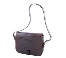 <span class='ref_item'>127 -</span> <span class="object_title">BOLSO EN PIEL DE COCODRILO Y PIEL MARRÓN</span>   <p><span class="technical_description">Bolso tipo bandolera realizado con piel de cocodrilo en tapa superior y posterior, asa y cierre. Cuerpo en piel marrón. Dos compartimientos interiores y otro con cremallera. <br/>Muestra algunas señales de uso.<br/>Medidas sin incluir el asa: 26x20,5cm</span><br></p>