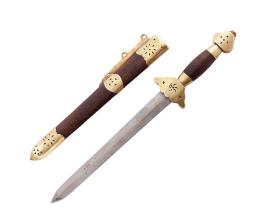 <span class='ref_item'>107 -</span> <span class="object_title">DAGA VINTAGE - ESPADÍN CHINO</span>   <p><span class="technical_description">Daga vintage o espadín chino con empuñadura realizada en metal dorado y hoja en acero de 21cm. Se acompaña de funda de madera con adornos en metal dorado con soporte para colgar en la cintura.<br/>Longitud total: 33cm</span><br></p>