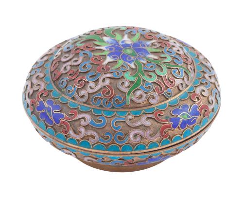 <span class='ref_item'>113 -</span> <span class="object_title">CAJITA EN METAL DORADO REPUJADO Y ESMALTADO. CHINA. S.XIX</span>   <p><span class="technical_description">Pequeña caja para tocador realizada en metal dorado repujado, decorado con motivos en esmalte de colores. Interior en color azul.</span><br></p>