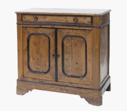 <span class='ref_item'>188 -</span> <span class="object_title">APARADOR FRANCÉS EN MADERA DE RAÍZ DE ABEDUL BARNIZADA</span>   <p><span class="technique_material">Abedul</span><br><span class="technical_description">Aparador francés, en madera de raíz de abedul barnizada, s.XVIII. Frente formado por cuerpo inferior de dos puertas con balda interior y superior con cajón. Presenta como única decoración molduras en madera ebonizada que resaltan sobre la superficie. Tiradores en madera torneada. Apoya sobre patas de perfiles recortados. </span><br><span class="ALTO_HCES1">110</span>x<span class="ANCHO_HCES1">54</span>x<span class="GRUESO_HCES1">117 </span><span class="GRUESOUMED_HCES1">cm.</span></p>