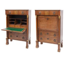 <span class='ref_item'>194 -</span> <span class="object_title">MUEBLE SECRETER ESTILO IMPERIO EN MADERA DE CAOBA. FRANCIA, S.XIX.</span>   <p><span class="technical_description">Mueble secreter realizado en madera de caoba, decorado con dos columnas corintias en laterales talladas con dorado. Presenta un cuerpo dividido por un cajón superior con tiradores en latón, una tapa central abatible que contiene en su interior tres cajones y compartimentos de amplio espacio. Tabla está forrada con piel color verde decorada con filigrana dorada. Cuerpo rematado por dos cajones inferiores con tiradores y bocallaves en latón. Conserva la llave de la tabla abatible.<br/>Con tabla de mármol gris en la parte superior.</span><br><span class="ALTO_HCES1">142</span>x<span class="ANCHO_HCES1">93</span>x<span class="GRUESO_HCES1">46,50 </span><span class="GRUESOUMED_HCES1">cm.</span></p>