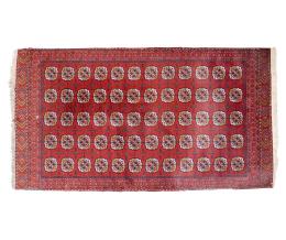 <span class='ref_item'>187 -</span> <span class="object_title">ALFOMBRA EN LANA ROJA CON MOTIVOS GEOMÉTRICOS</span>   <p><span class="technical_description"> Cenefa perimetral con motivos geométricos en varios tonos y centro con patrón en colores amarillo y blanco. Con pasamanería en lados cortos.<br/>Desperfectos en largos<br/>Medidas. 198x305cm</span><br></p>