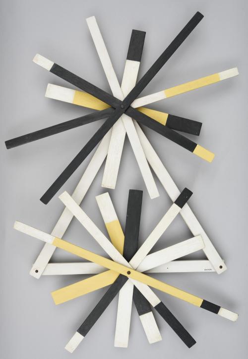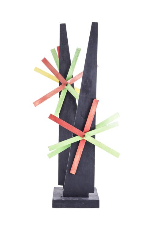 <span class='ref_item'>208 -</span> <span class="object_title">SIN TÍTULO. Ca.1950</span>   <p><span class="author">SANDU DARIE (Román, Rumanía, 1908 - La Habana, Cuba,  1991)</span> <br><span class="technique_material">Técnica mixta, varillas de madera pintadas. </span><br><span class="technical_description">Firmado en una de las aspas<br/>Medidas: 85 x 65cm</span><br></p>