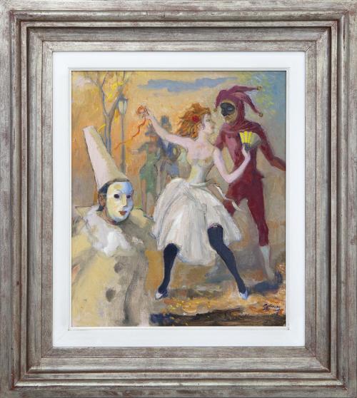 <span class='ref_item'>75 -</span> <span class="object_title">"CARNAVAL" (S. XX)</span>   <p><span class="author">RICARDO SERNY SUMMERS (Cádiz, 1908 - Madrid, 1995)</span> <br><span class="technique_material">Óleo sobre lienzo</span><br><span class="technical_description">Muestra una serie de figuras disfrazadas de diferentes personajes de circo, celebrando el Carnaval en un exterior urbano.<br/>Firmado por el autor en la esquina inferior derecha.<br/>Enmarcado en madera plateada. <br/>Medidas marco: 70x61,5cm</span><br></p>